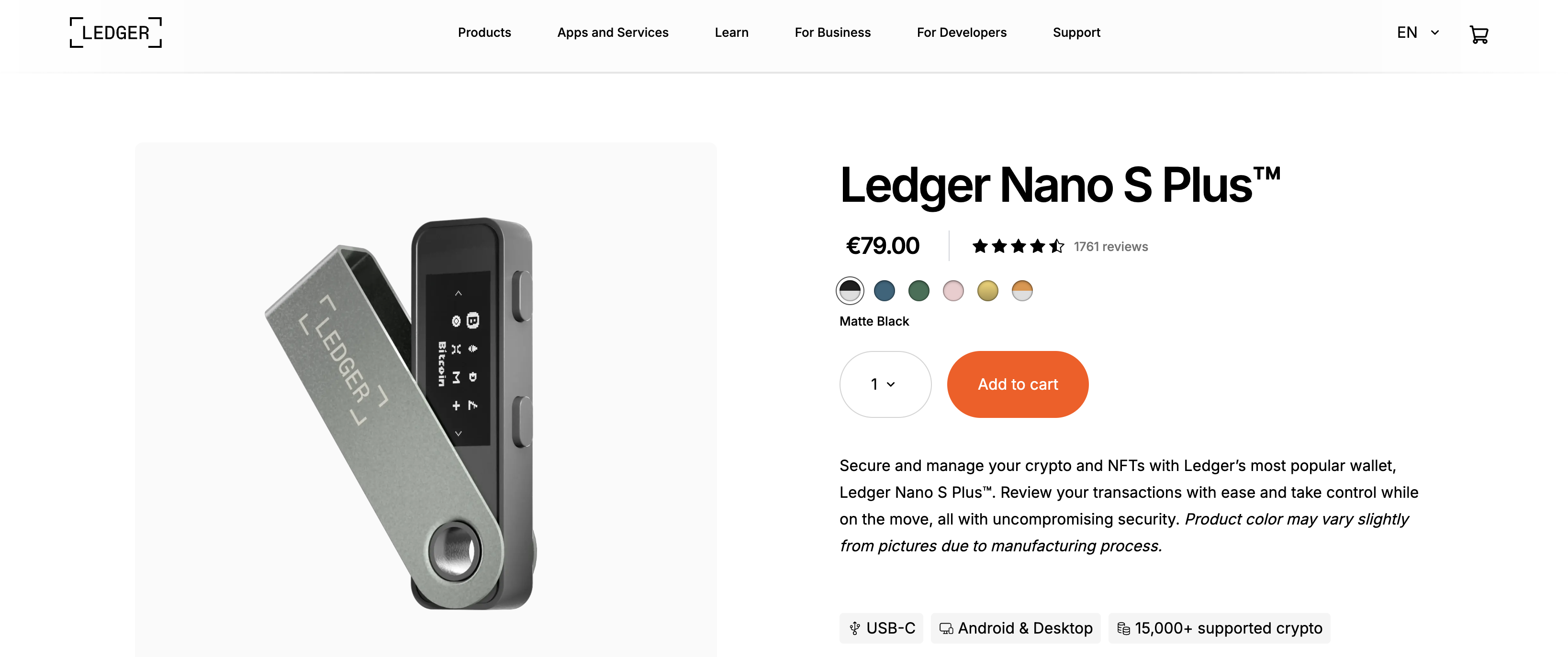 In the top tier among cold wallets, we can mention Ledger Nano S Plus, which allows storing cryptocurrencies and NFT tokens and has access to DeFi and Web 3.0. This is a separate device with the ability to connect to PCs and mobile phones via USB.